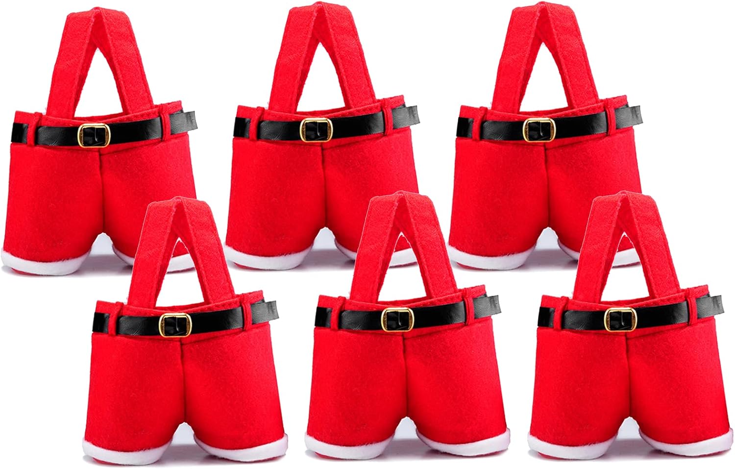 Feature:Shaped like Santa pants with hollow legsGreat for holding chocolates, sweets or other small giftsPerfect for holiday party no matter you are hosting or attendingMaterial: LintMain Color: RedSize:Small: 5.71"x5.12"x2.36"/14.5cm x 13cm x 6cmLarge: 8.66"x8.46"x3.54"/22cm x 21.5cm x 9cmNote:Bag only,the gifts are not includedPackage Content:5 Pcs Candy Gift Bags
