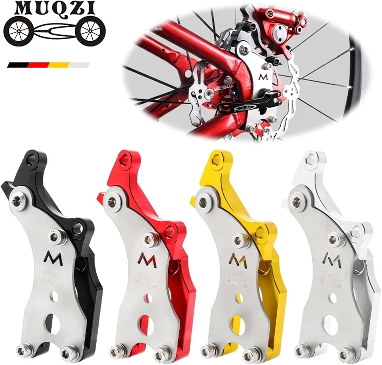Safe & Stable Braking PerformanceBoasts a stable structural design that ensures secure and reliable operation during cycling. Provides solid support for disc brake function, effectively improving braking responsiveness and overall riding safetyMaterial: Aluminum Alloy + SteelSize: 120x51x44MmColor: Black/Red/Gold/SilverPackage includes:Disc brake bracket *2Note:There might be a bit color distortions due to different computer resolutions.There might be a slight errors due to different hand measurement.