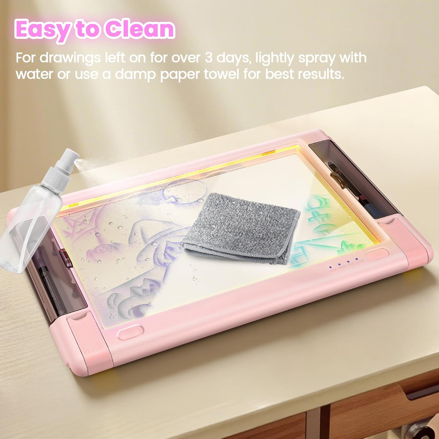 | Included Components | Rechargeable 9-mode LED drawing tablet, 5 colorful markers, 1 hard card background paper, 10 double-sided tracing papers, a USB-C cable, spray bottle & cloth for cleaning, and a user manual |