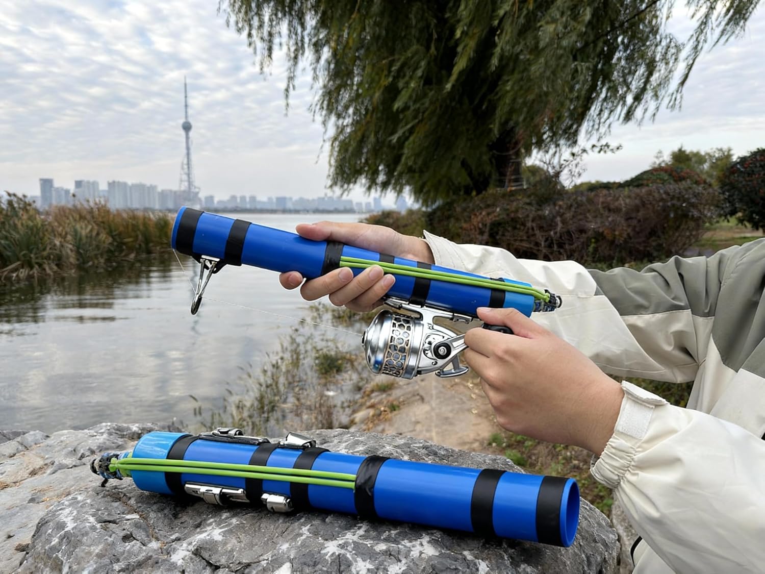 Specifications:Length: 15.2 inches (38.5 cm)Diameter: 1.6 inches (4 cm)Weight: 9.0 ounces (0.225 kg)This compact fishing rod prioritizes portability and practicality, designed to enhance the joy of fishing during outdoor adventures and travels. Its streamlined design collapses to approximately 15.2 inches, fitting easily into most backpacks or vehicle trunks. Crafted from premium materials with reinforced joints, it withstands daily use and travel bumps, making it suitable for diverse shoreline environments. The rod's sensitive tip and balanced action enhance control over casting accuracy, allowing anglers to precisely target areas like pier edges or weed beds. This maximizes fishing efficiency by minimizing wasted time. Combining fishing and baiting functions into one versatile tool, it helps scatter bait at fishing spots to create attractive zones for fish, reducing waiting time and streamlining the fishing process. Assembly is quick and tool-free, allowing anglers to start fishing faster and focus on enjoying the outdoors. Additionally, this saltwater fishing rod makes an excellent gift—whether for family members who enjoy weekend leisure or as a beginner's first rod—it represents a sincere invitation to explore outdoor living.